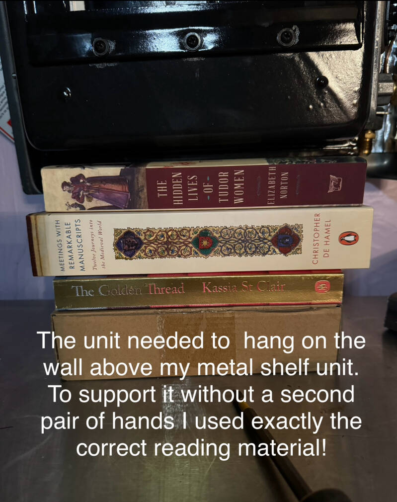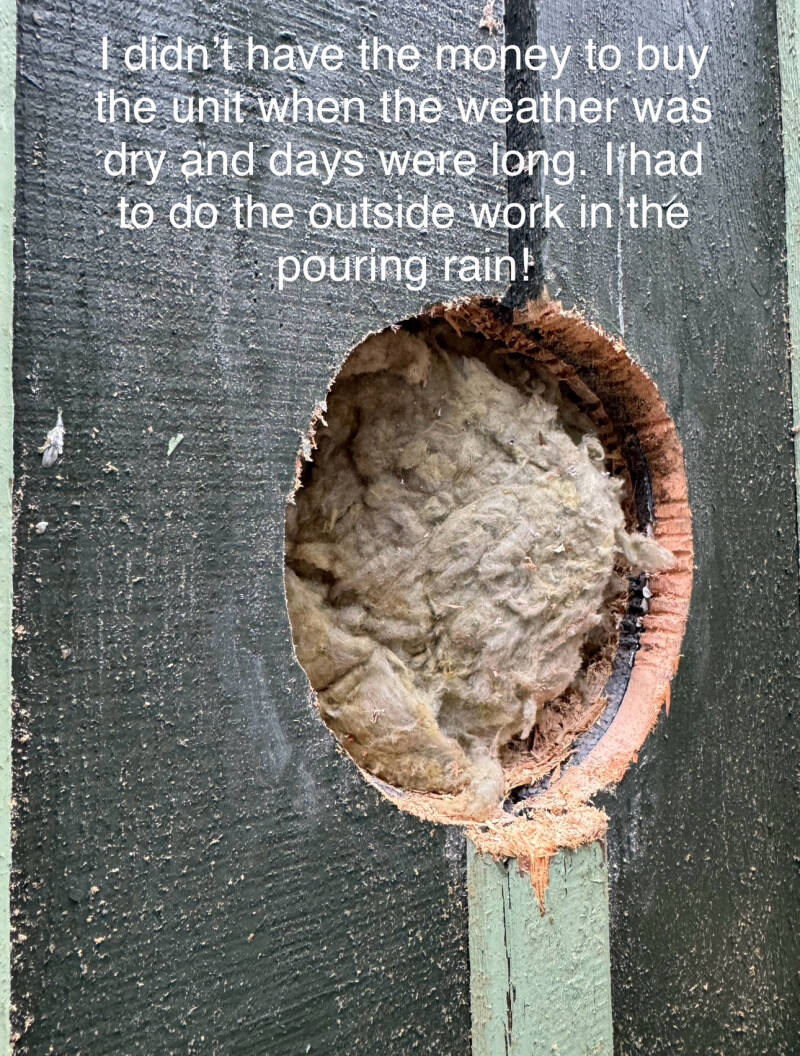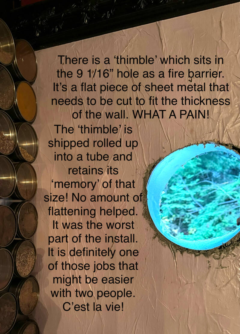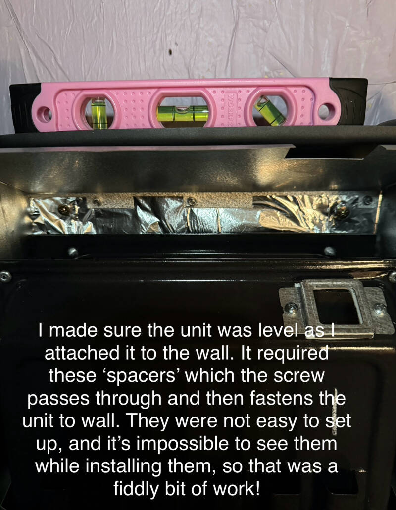 Once the thimble was wrestled and dominated into subjugation, I attached the vent to the unit and set it in place on the wall.