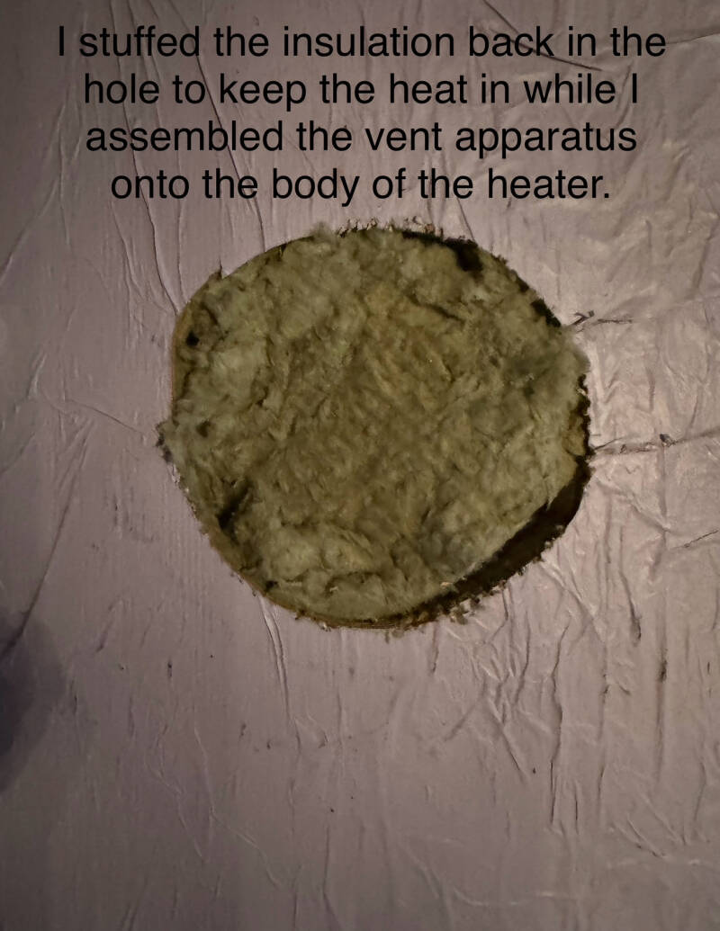 I chose the MARTIN Gravity Vented Wall Furnace, series MDV12. Its max thermal output is 8,800 BTU/hr, and that’s a lot of heat. It was easy, but fiddly to install. It took 5 hours and 47 minutes from start to finish.
